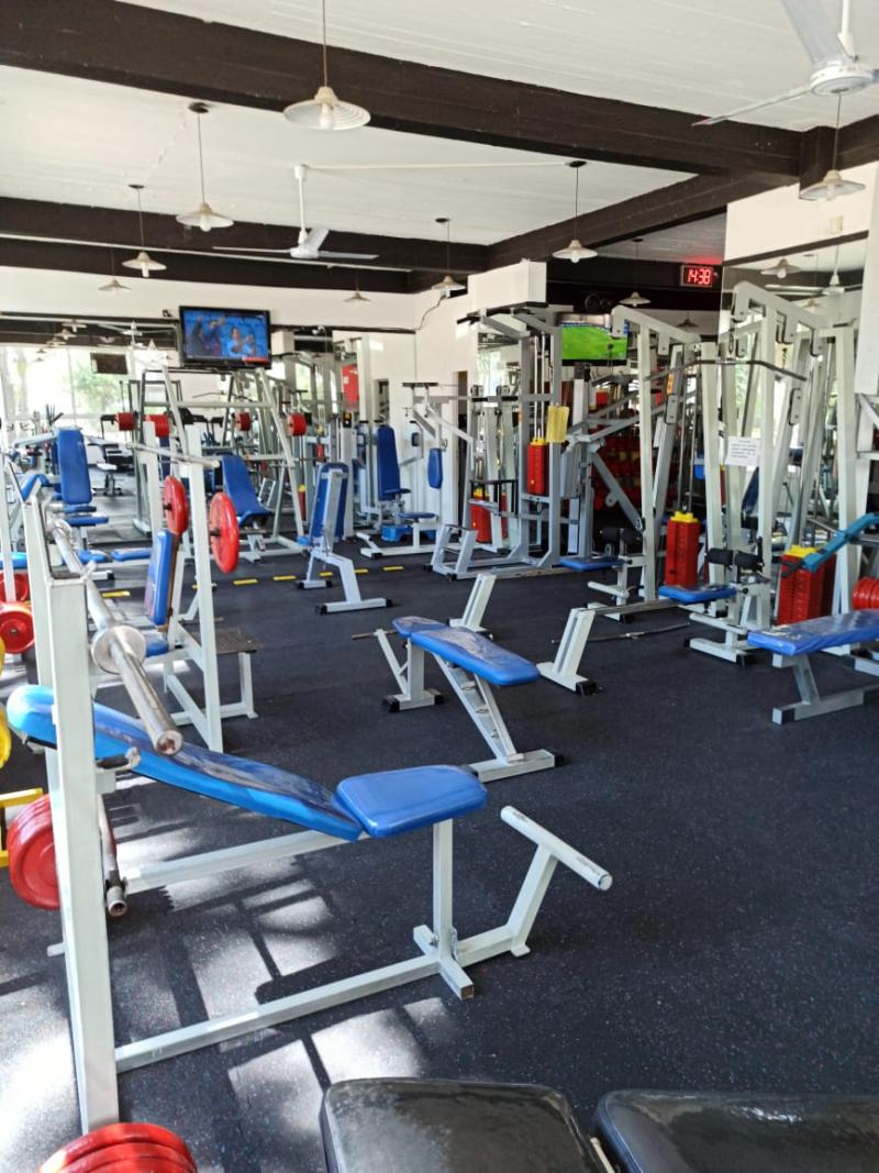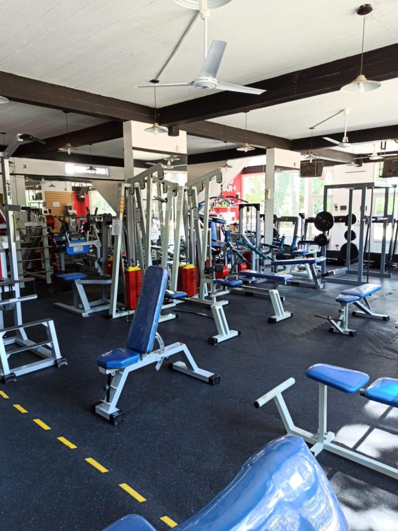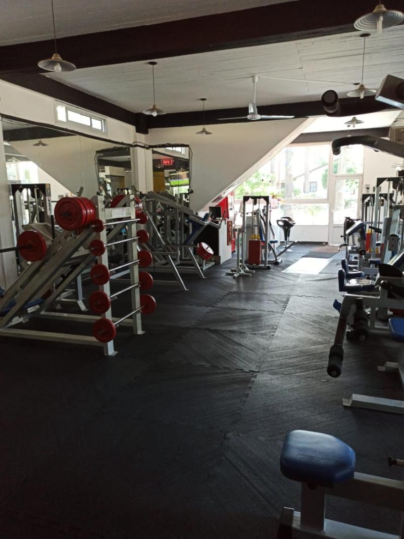 Piso de caucho reciclado encastrable, instalado en gimnasio Pinamar, sector musculación