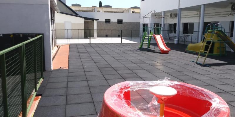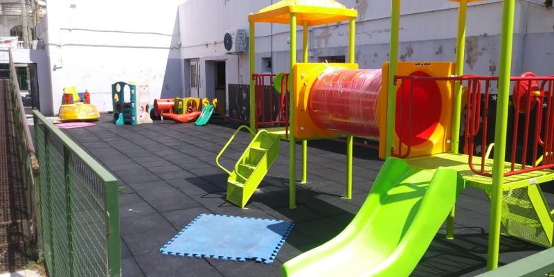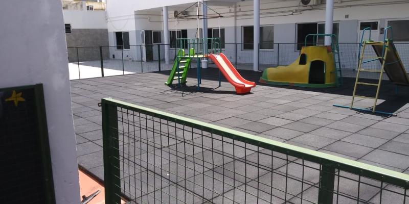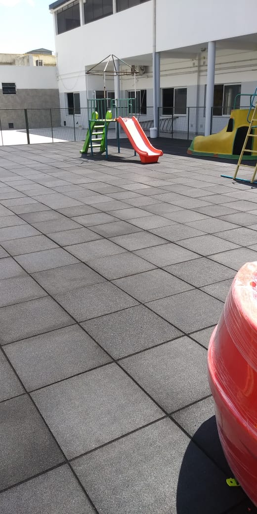 Piso de caucho reciclado, baldozas, instalado en jardín de infantes colegio strada en la localidad de Lanús