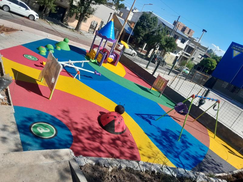 Innovación y Seguridad en Espacios Públicos: Piso Antigolpe y Didáctico con Caucho Ecopiano Reciclado, en Plaza René Favaloro, Avellaneda.