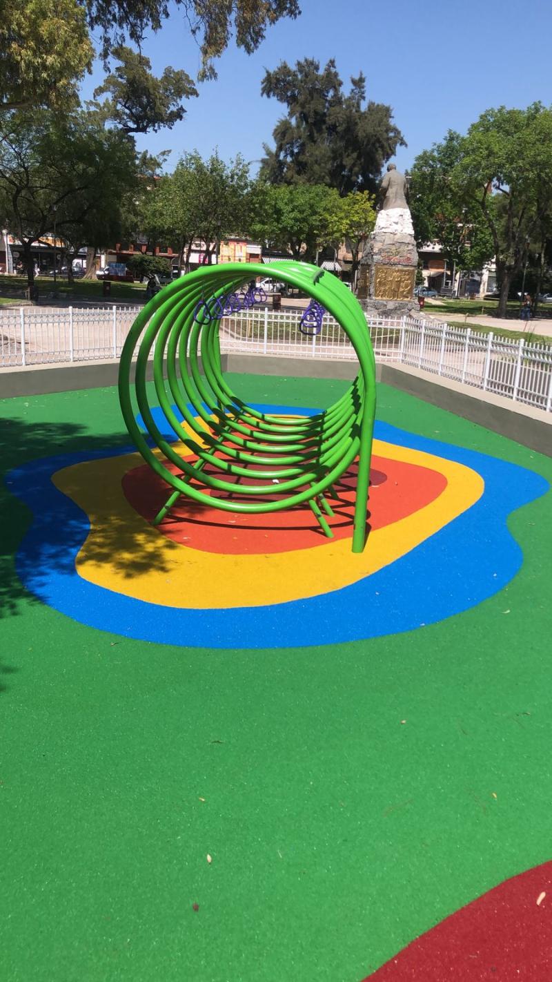 ¡Descubre el innovador paisaje de la Plaza Presidente Sarmiento en Lanús, donde la empresa Ecopiano ha transformado el entorno con su revolucionario piso de caucho continuo!